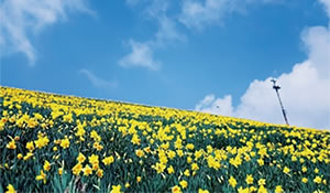 4月下旬~5月上旬には、約2万平方メートル、約30万球のスイセンが見ごろを迎えます
