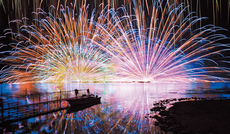 打ち上げ場所の湖畔に面した商連桟敷席をご用意!