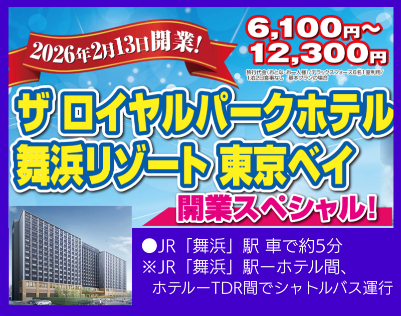 ※JR「舞浜」駅ーホテル間、ホテルーTDR間でシャトルバス運行