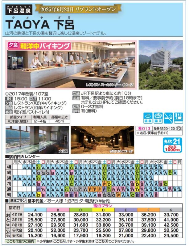 | 基本代金 | おとな:24,100円~、こどもA:20,100円~、こどもB:15,200円~ |