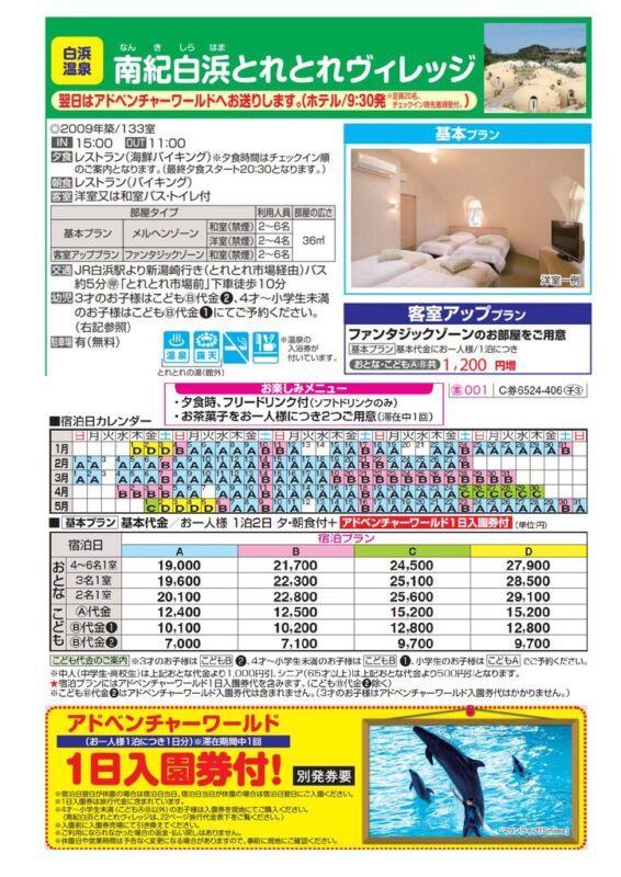 | 基本代金 | おとな:19,000円~、こどもA:12,400円~、こどもB2:7,000円~ |