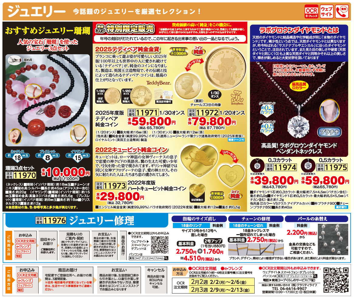 OCR注文用紙 (提出期間:2月2日~13日) 、eフレンズ、お電話、メールフォームでお申込みいただけます。